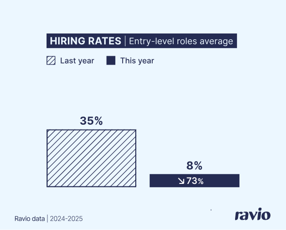10: Interns and junior roles across almost every industry are getting hit hard by AI. According to the latest Ravio jobs report, there’s been a massive 75–84% drop in entry-level hiring just in the past year. Before AI took over, founders used to bring in lots of interns and junior folks—train them, mentor them, and keep the top 10%. Now? They’re skipping all that and going straight for the top 10%.