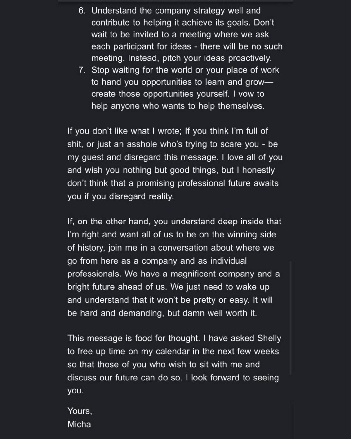 Here’s what I shared with my team recently, along with a copy of the letter Fiverr’s CEO sent to his employees. It hit home. (If you haven’t read it, you should.)